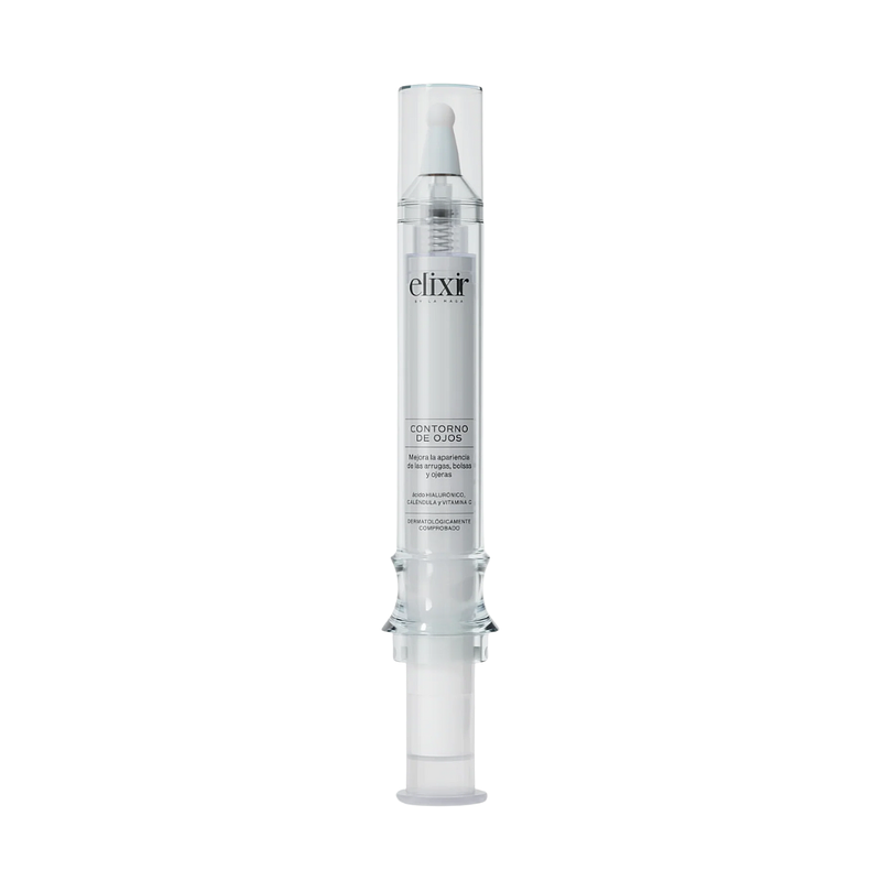 Aplicar delicadamente una pequeña cantidad en el contorno de los ojos, con el dedo anular realiza masajes circulares para atenuar líneas de expresión y mejorar la apariencia de fatiga, aplica en tu rutina de día y noche.