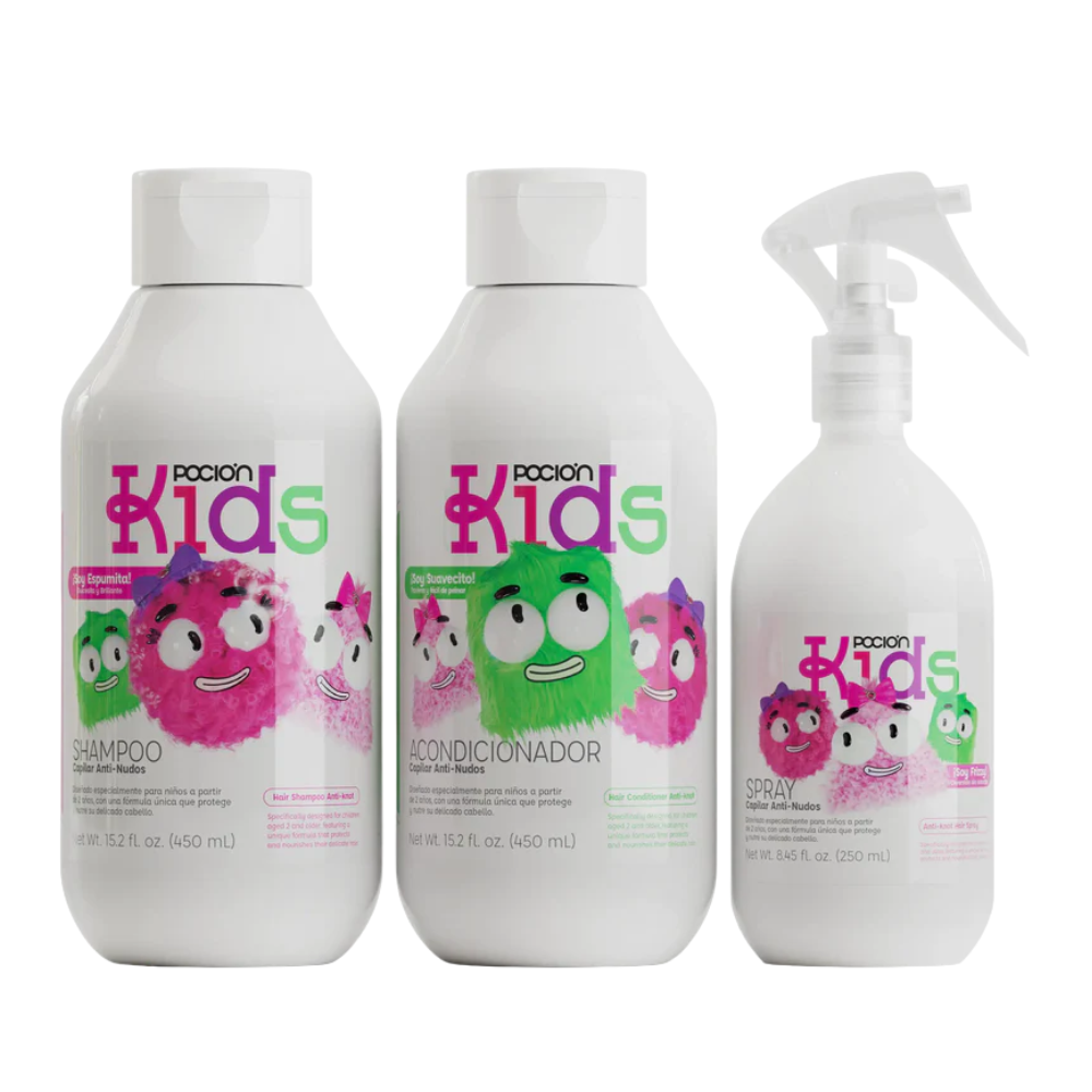 El Kit Sin Enredos para Niños es un tratamiento capilar completo diseñado especialmente para el cuidado diario del cabello infantil. Incluye shampoo, acondicionador y spray desenredante sin enjuague, todos formulados sin sulfatos, parabenos ni sal, ideales para proteger el cuero cabelludo delicado, facilitar el peinado y dejar el cabello suave, fuerte y brillante. Hecho con tecnología anti-nudos, desarrollada para facilitar el desenredo en cabellos finos, rizados o con fricción frecuente.