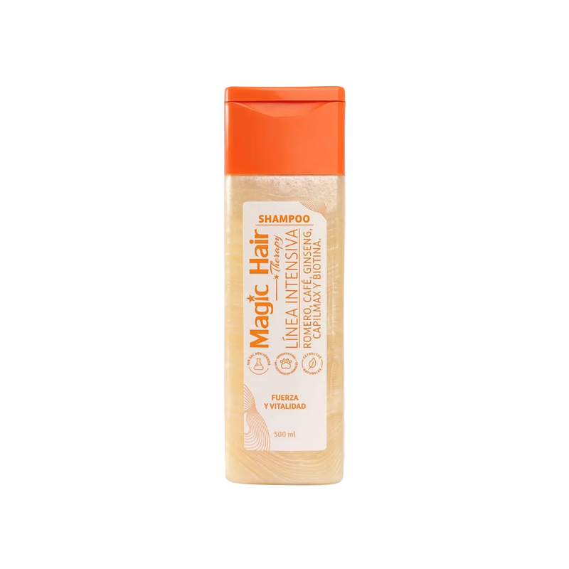 El Shampoo de Crecimiento Línea Intensiva Magic Hair es una fórmula que fusiona ciencia y naturaleza para llevar tu melena al siguiente nivel. Con formula mejorada que acelera el proceso de crecimiento, nutre desde la raíz y fortalece cada hebra. Contiene CAPILMAX un activo que fortalece la hebra desde la raíz evitando su caída. Tambien contiene extractos de romero, café, ginseng y biotina.